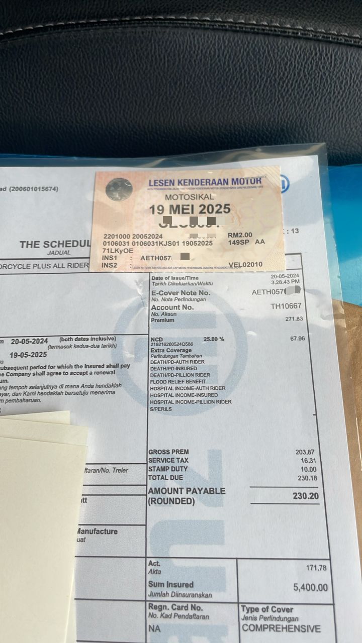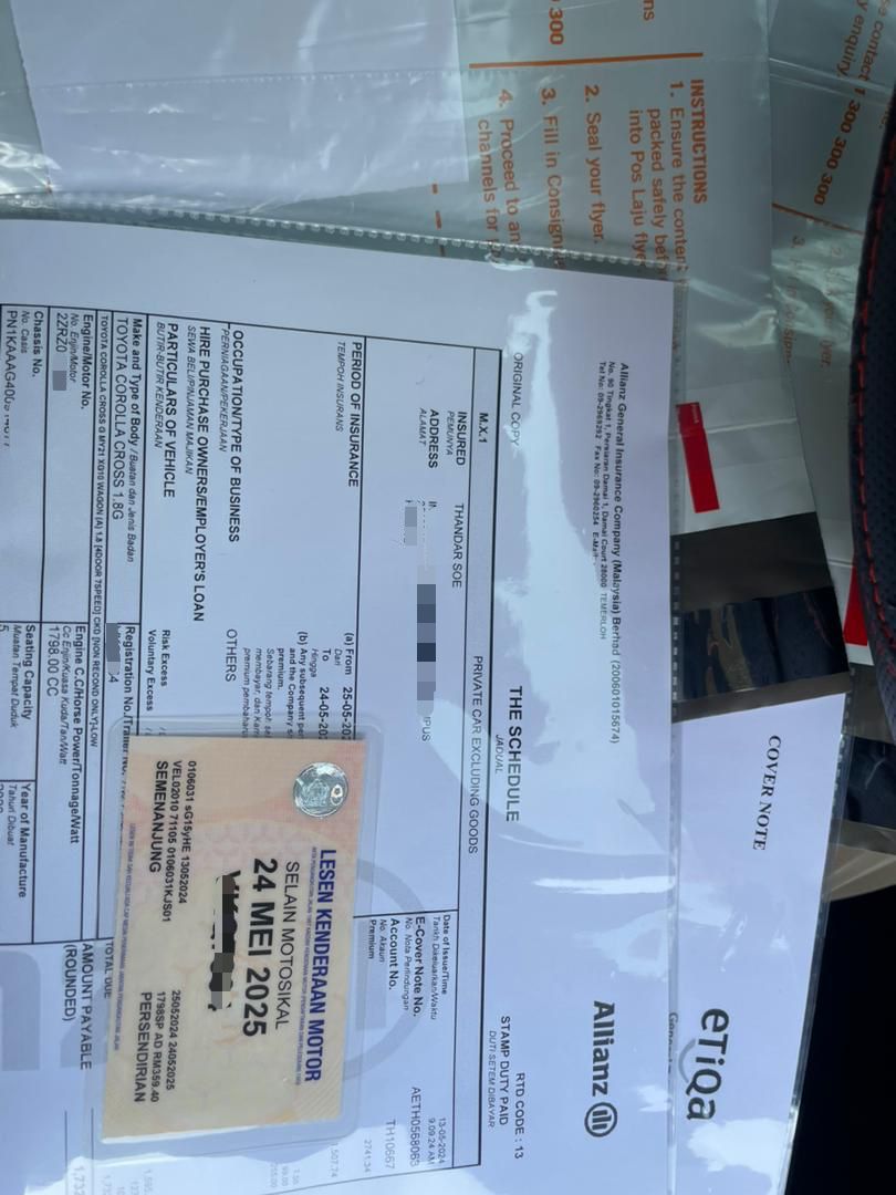 Order roadtax secara online gading Insurans, saya mempunyai masa yg banyak dengan keluarga dirumah. 1-2hari dh sampai kerumah.